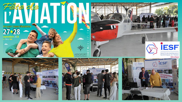 Sur invitation du Directeur de l'Aéroport Cannes-Mandelieu, M. Sébastien CAMELIS (Centrale-ENAC), IESF-CA a été invité à tenir un stand lors de la Fête Nationale de l’Aviation. Le vendredi 26 septembre a été réservé aux écoles, collégiens et lycéens des communes avoisinantes. Le 27, le grand public a bénéficié des activités. Nous avons pu promouvoir et présenter les métiers de l'ingénieur et du scientifique : un bon succès auprès des jeunes et des parents, dans un cadre original.