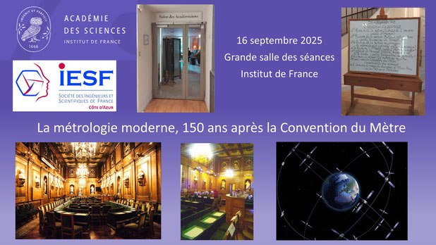 IESF était présent, par la voix de son président en Côte d'Azur, à la séance de l'Académie des Sciences du 16 septembre 2025, lors d'un débat autour de la métrologie moderne. Celle-ci joue un rôle clé dans l'industrie 4.0, grâce à l'intégration de capteurs intelligents et de l'IoT, ce qui améliore l'efficacité et la rentabilité. 150 ans après l'adoption du mètre, les expériences modernes de haute précision, comme celles utilisant des horloges atomiques (la seconde de temps à 10-18 ! "la démesure dans la mesure"), illustrent les avancées dans le domaine.