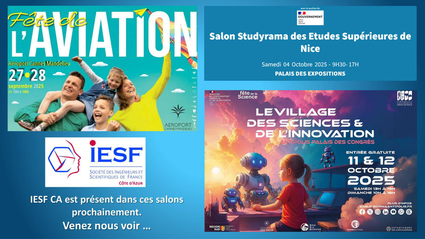 Les IESF Côte d’Azur tenaient un stand tout en réalisant des conférences sur les métiers de l’Ingénieur et du Scientifique avec pour thème « Ingénieur Demain ». Ce fut un moment d'échange entre parents et adolescents pour mieux leur faire connaitre ces métiers, comment s'y préparer et comment y parvenir.